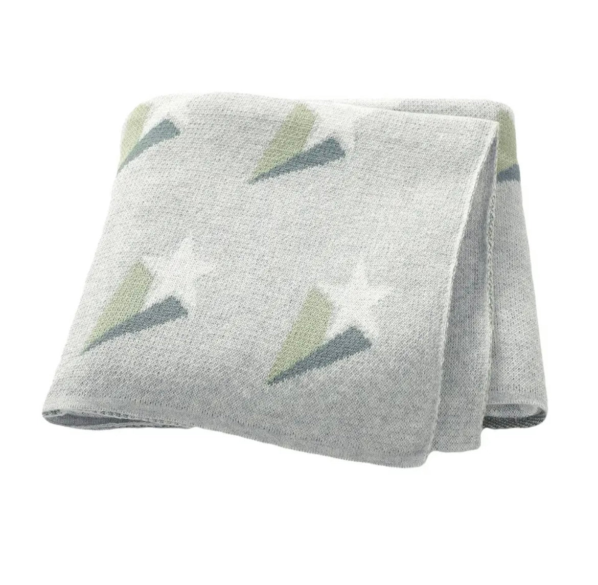100% GOTS certified Cotton knit blanket with shooting star block colour print