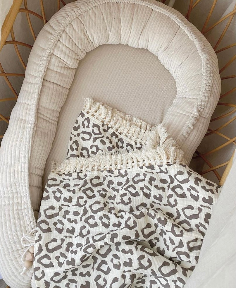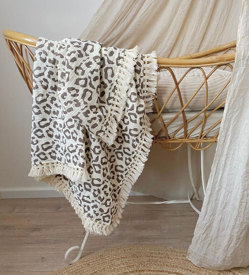 Cotton muslin fringe boho multi use swaddle - Leopard